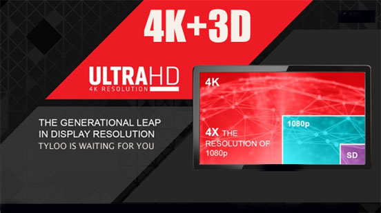 4K分辨率,潮流之选 近几年,数字标牌行业发展迅猛,新技术层出不穷。进入2014年,4K技术大有普及之势。数字标牌企业纷纷引入4K概念提升自身产品的竞争力,震撼细腻的显示效果将产品展现的更具质感和冲击力,起到更好的产品推广作用。